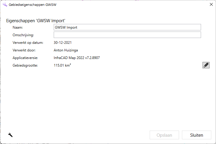 De eigenschappen van het gebied worden getoond in een dialoogvenster: