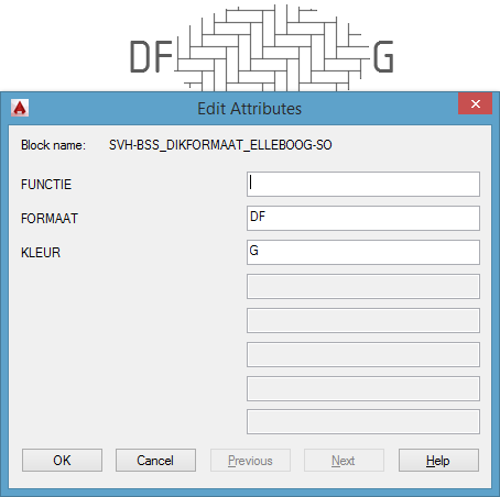 NLCS Attributes Na het plaatsen van een Symbool met Attributes heeft u de mogelijkheid deze in te vullen. Het volgende AutoCAD scherm zal verschijnen: